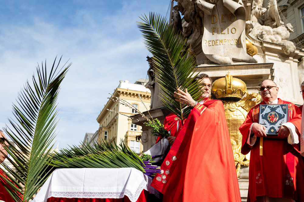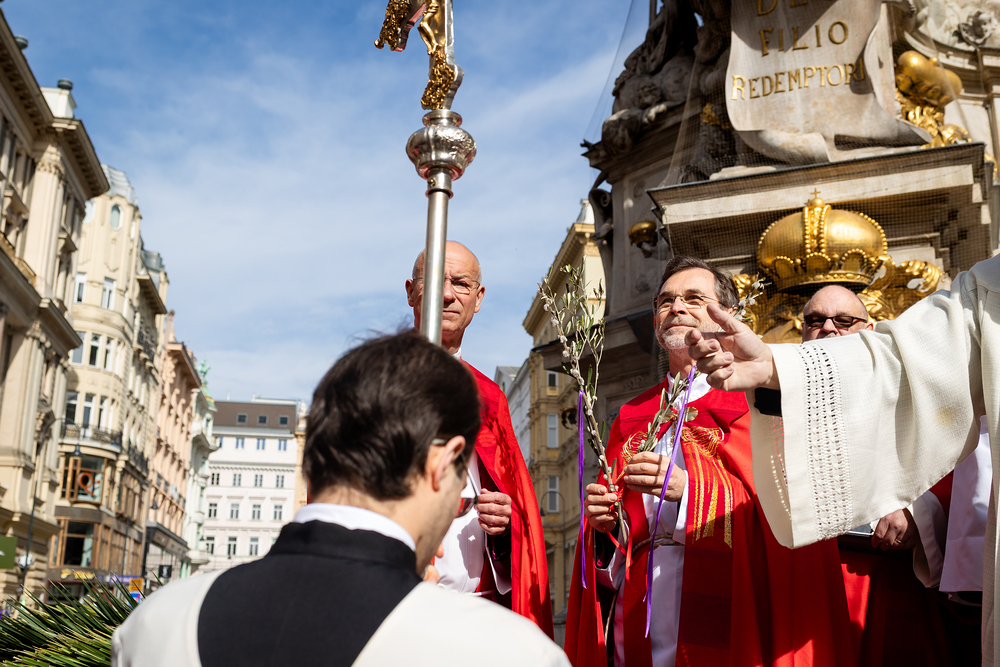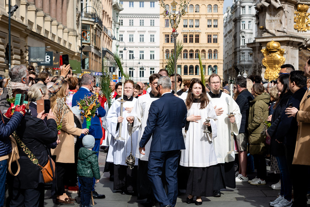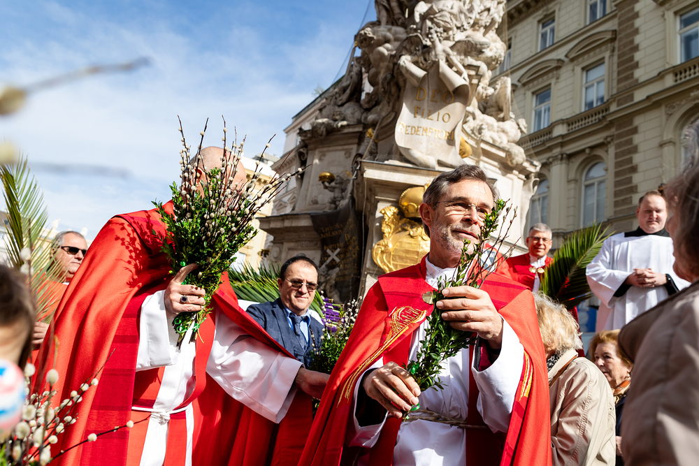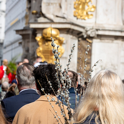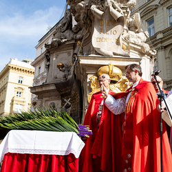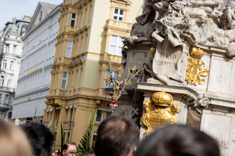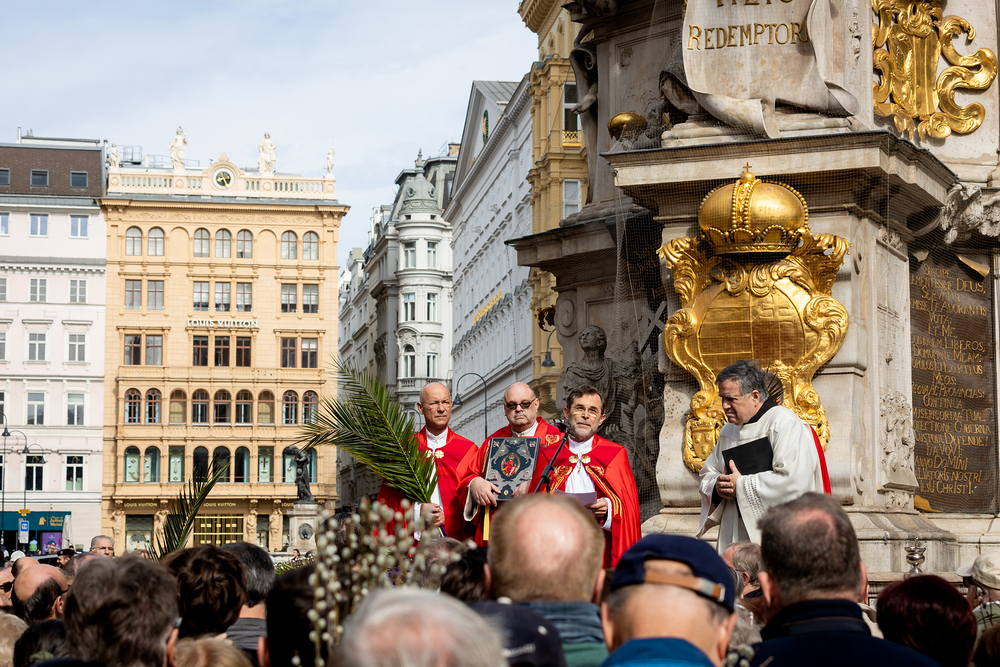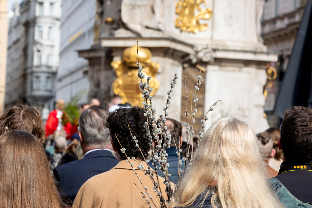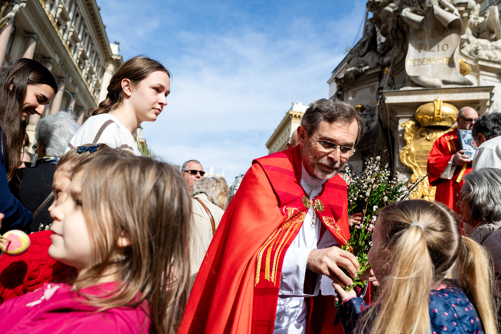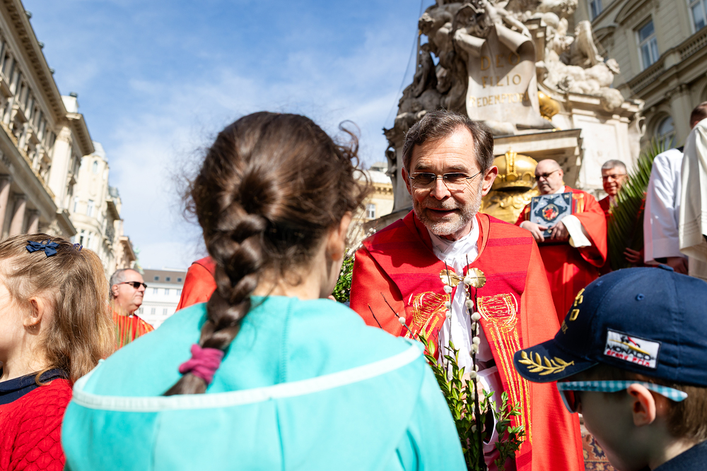 Der Palmsonntag ist ein Tag, der von Freude und Jubel geprägt ist. Er erinnert an Jesu Einzug in Jerusalem, bei dem die Menschen ihm zujubelten und mit Palmzweigen winkten. Jesus wird gleichsam als König gefeiert. Das ist vergleichbar damit, wie heute hohen Persönlichkeiten der rote Teppich ausgerollt wird. Die Palmweihe des Stephansdoms, geleitet vom Apostolischen Administrator Josef Grünwidl, fand bei der Pestsäule am Graben statt. Anschließend zog die Prozession feierlich in den Stephansdom ein. Wir waren mit der Kamera dabei.