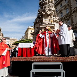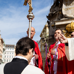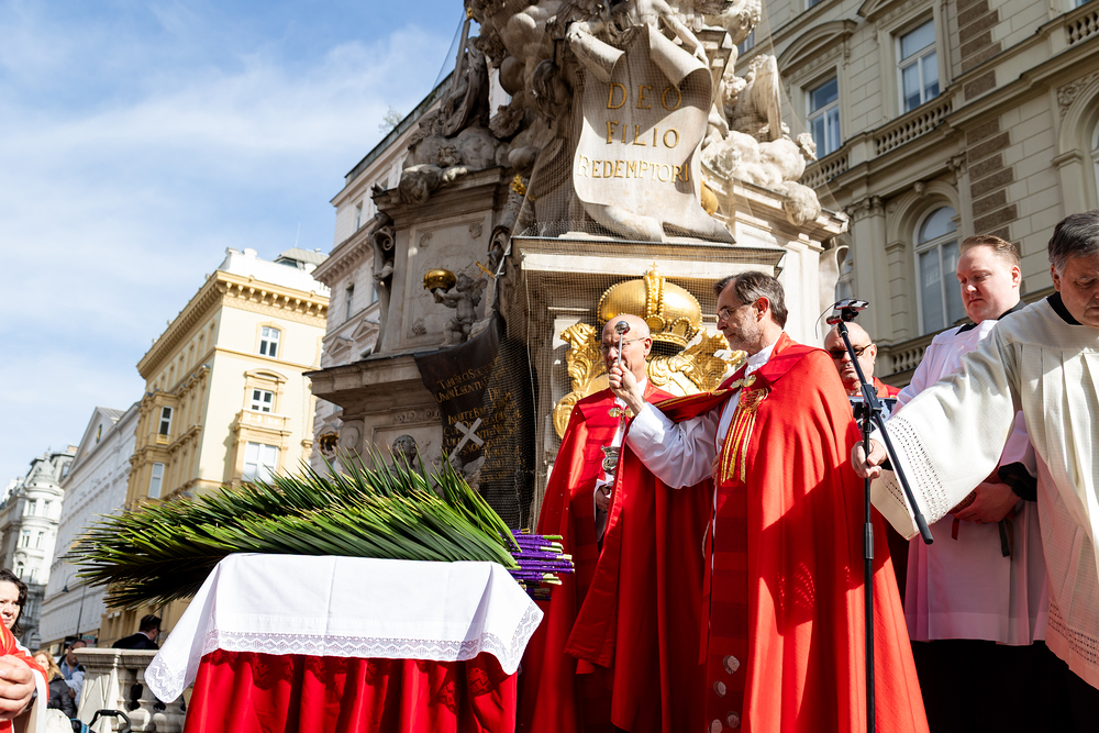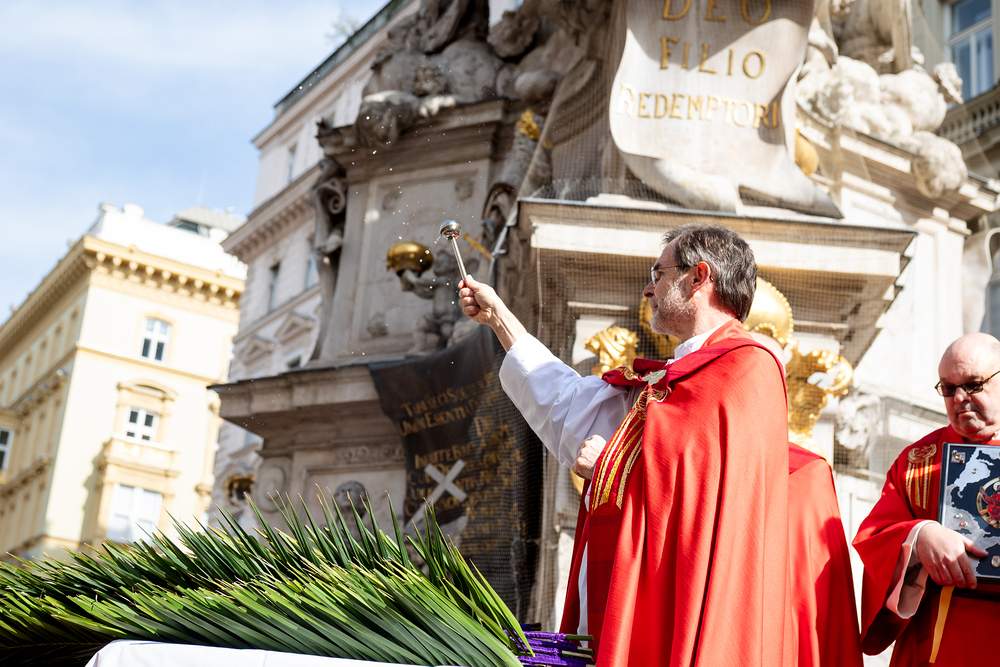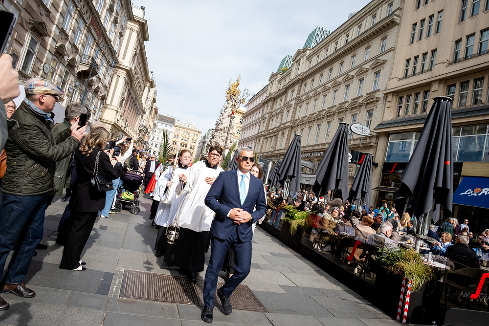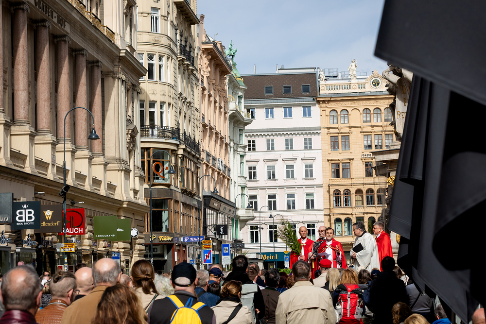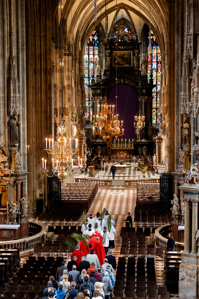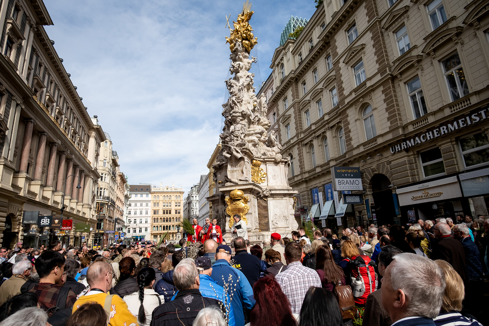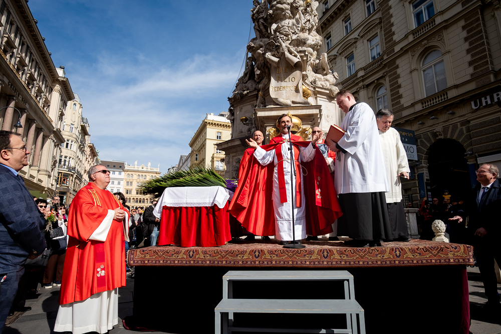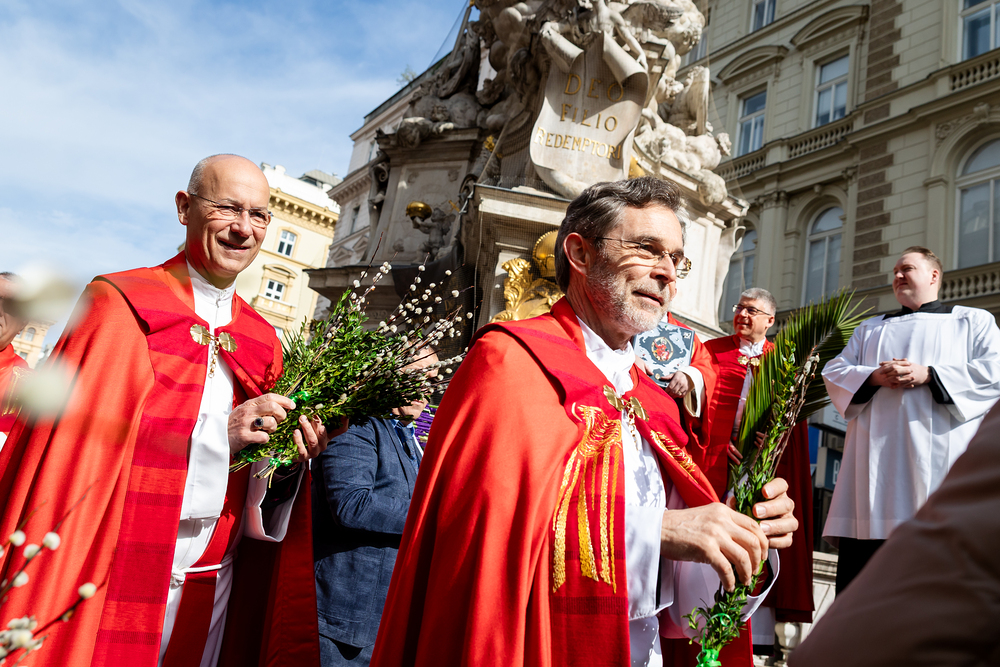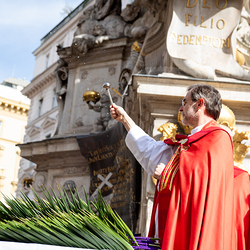 Der Palmsonntag ist ein Tag, der von Freude und Jubel geprägt ist. Er erinnert an Jesu Einzug in Jerusalem, bei dem die Menschen ihm zujubelten und mit Palmzweigen winkten. Jesus wird gleichsam als König gefeiert. Das ist vergleichbar damit, wie heute hohen Persönlichkeiten der rote Teppich ausgerollt wird. Die Palmweihe des Stephansdoms, geleitet vom Apostolischen Administrator Josef Grünwidl, fand bei der Pestsäule am Graben statt. Anschließend zog die Prozession feierlich in den Stephansdom ein. Wir waren mit der Kamera dabei.
