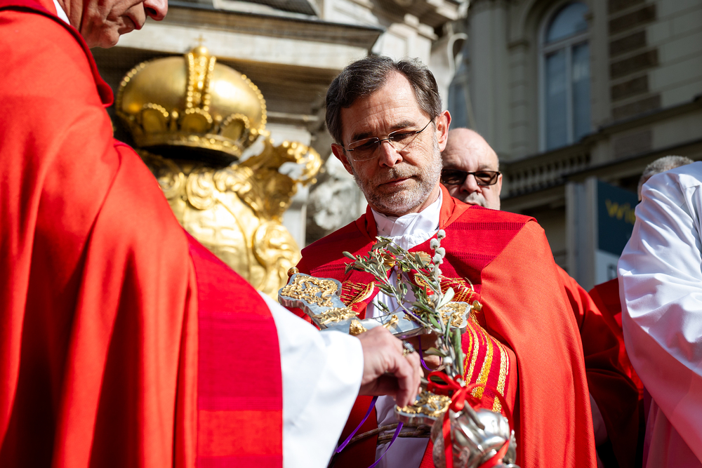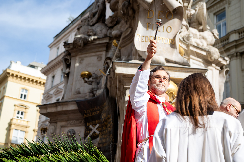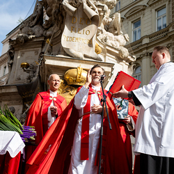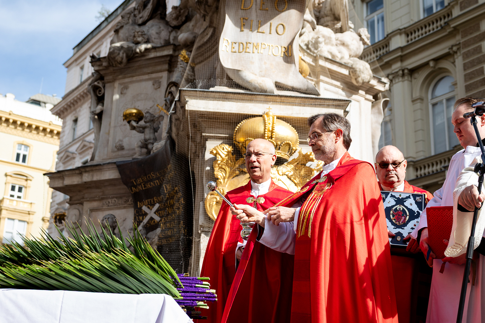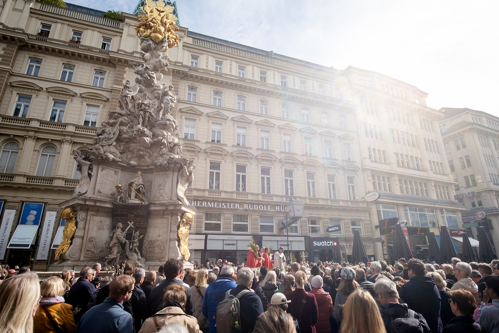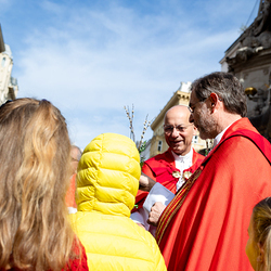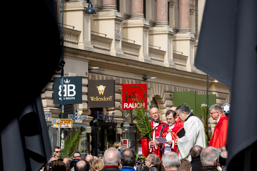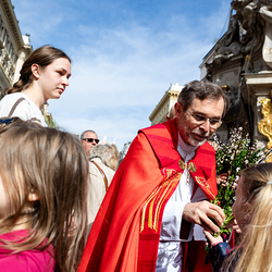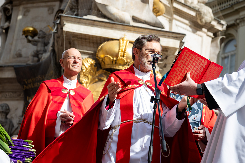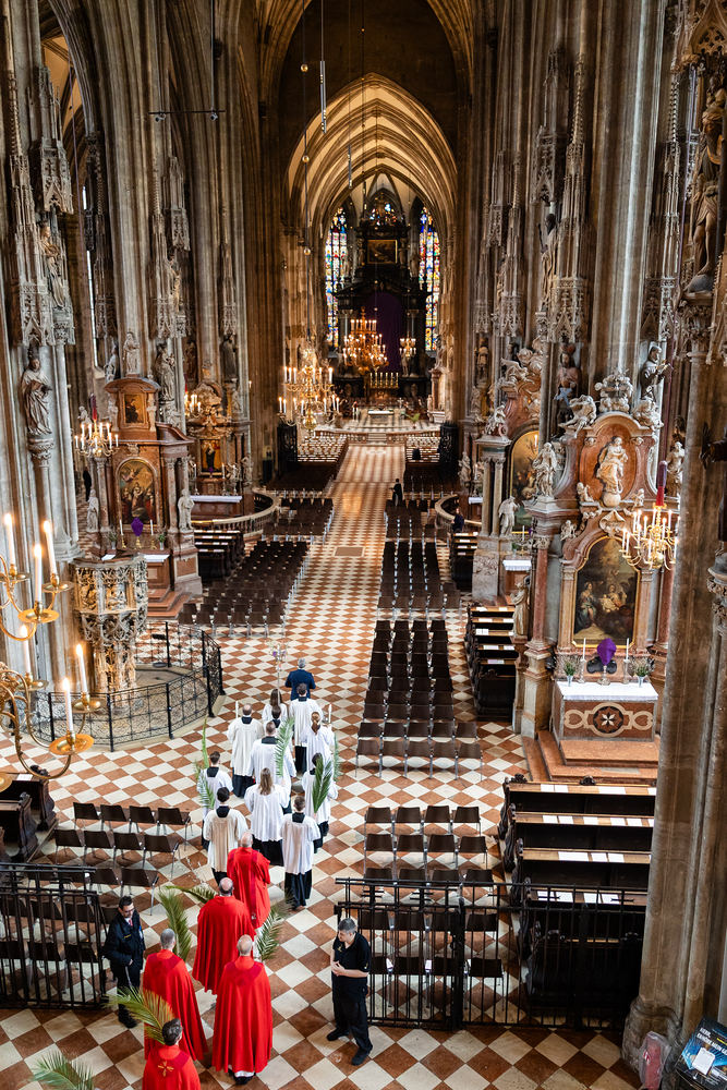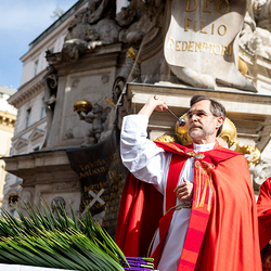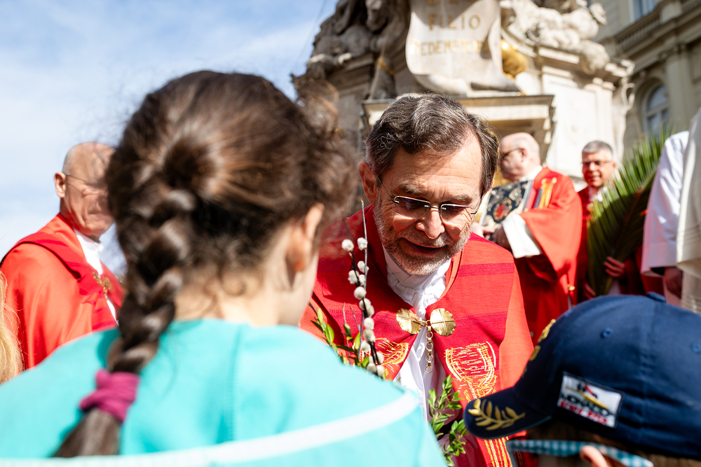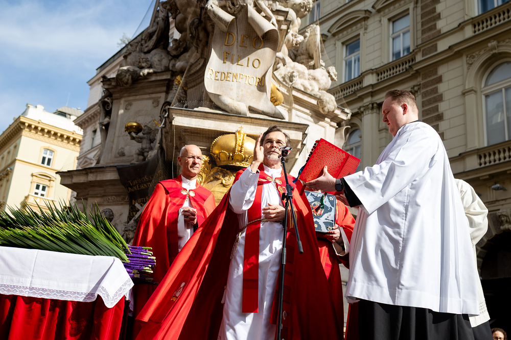 Der Palmsonntag ist ein Tag, der von Freude und Jubel geprägt ist. Er erinnert an Jesu Einzug in Jerusalem, bei dem die Menschen ihm zujubelten und mit Palmzweigen winkten. Jesus wird gleichsam als König gefeiert. Das ist vergleichbar damit, wie heute hohen Persönlichkeiten der rote Teppich ausgerollt wird. Die Palmweihe des Stephansdoms, geleitet vom Apostolischen Administrator Josef Grünwidl, fand bei der Pestsäule am Graben statt. Anschließend zog die Prozession feierlich in den Stephansdom ein. Wir waren mit der Kamera dabei.