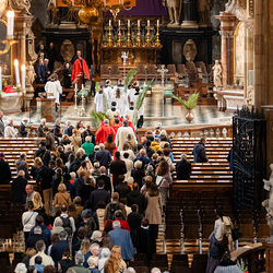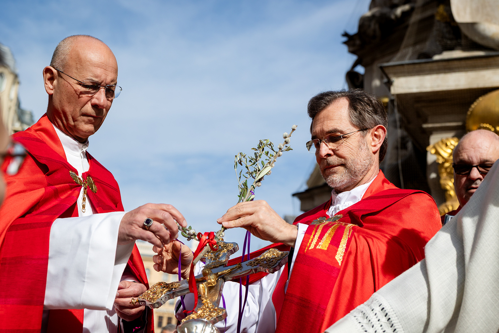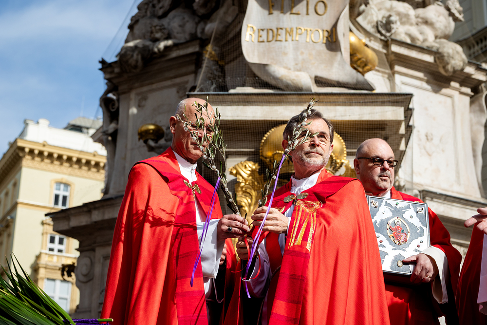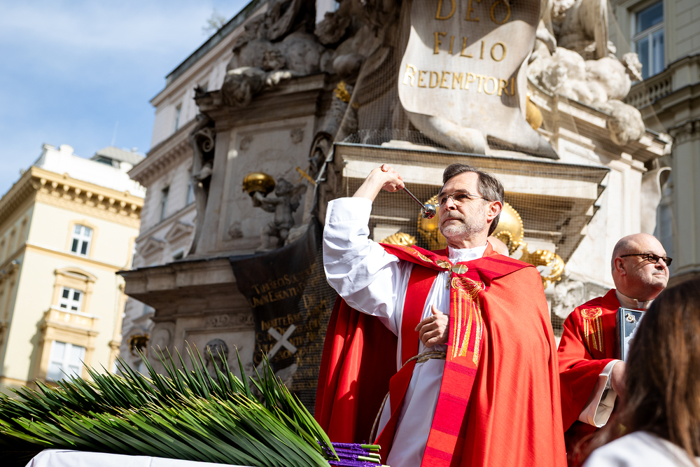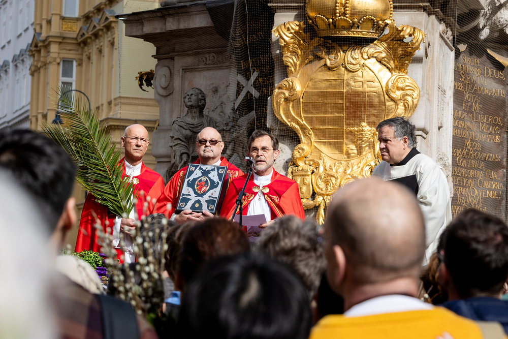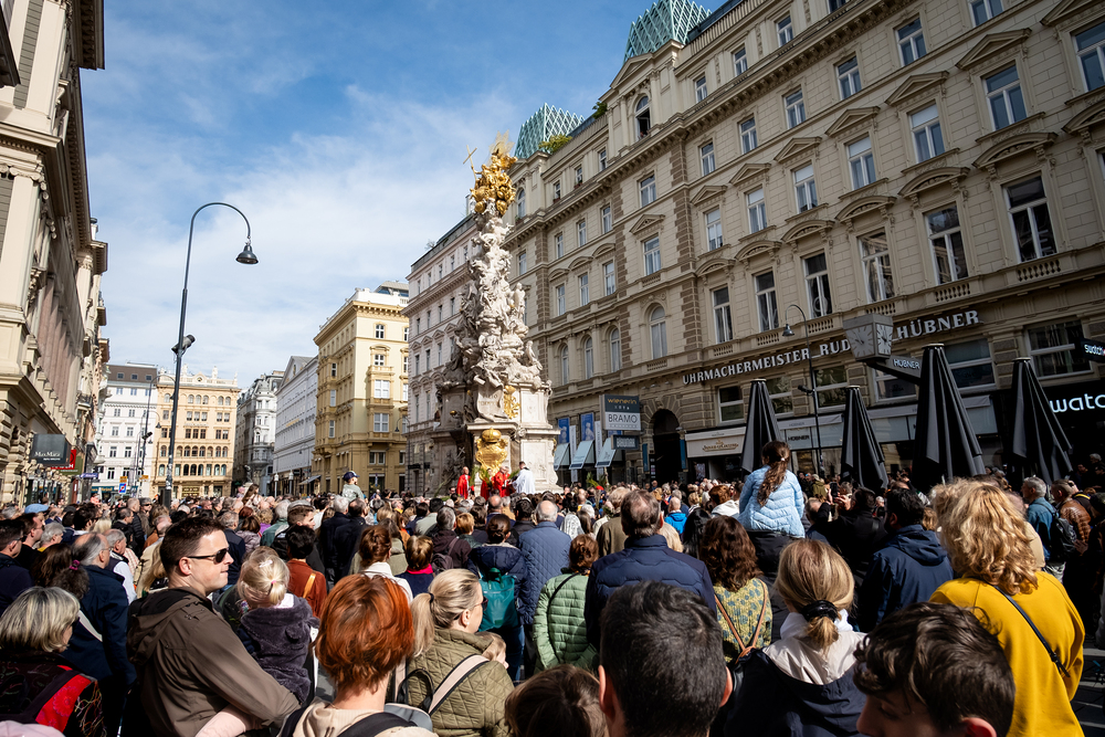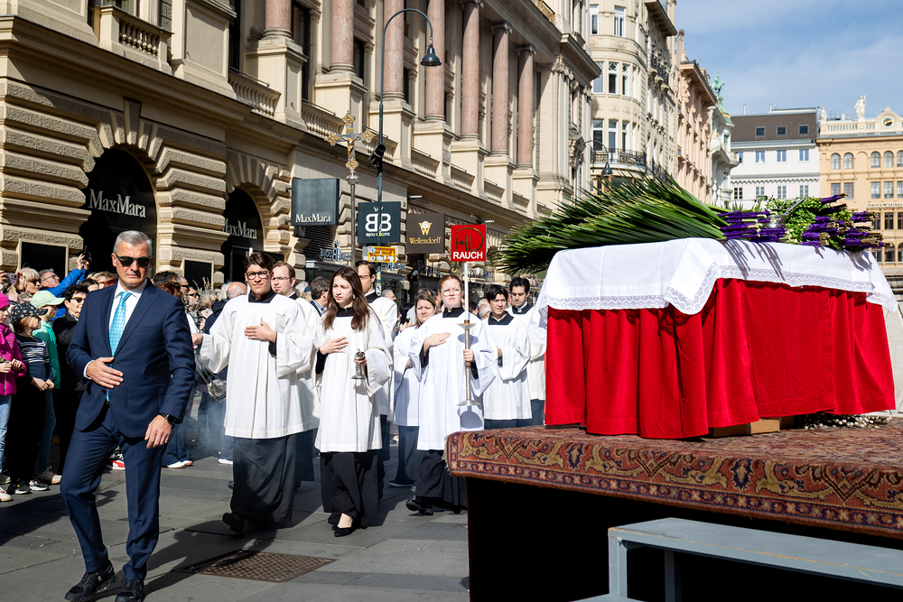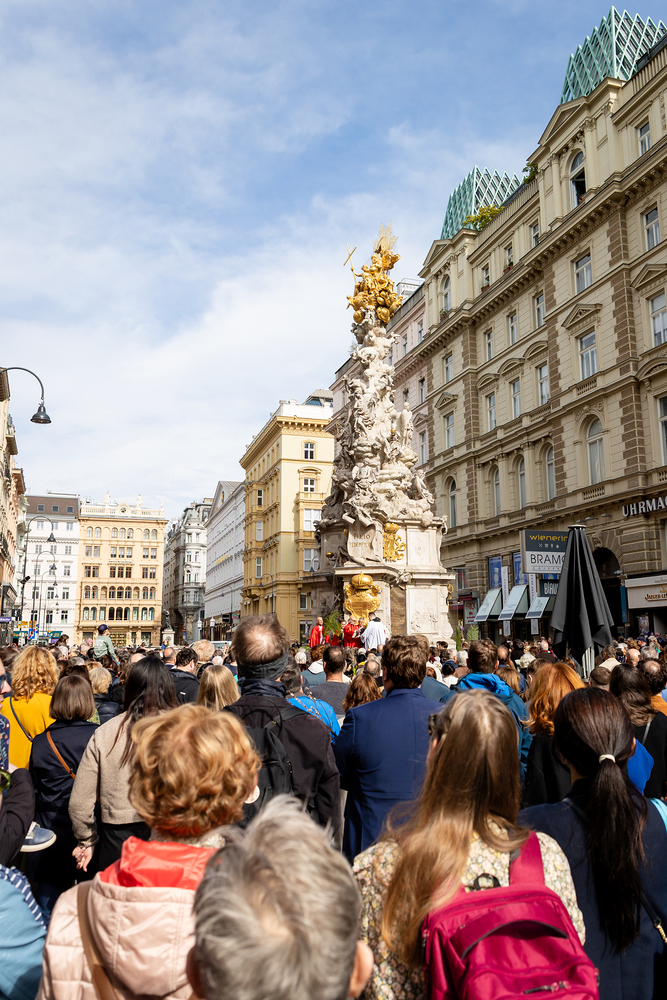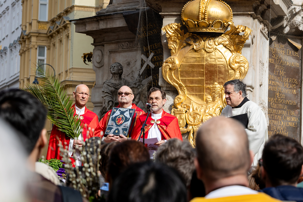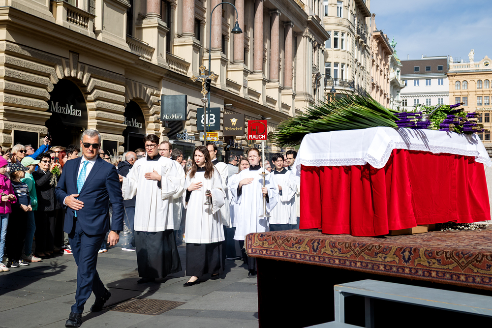 Der Palmsonntag ist ein Tag, der von Freude und Jubel geprägt ist. Er erinnert an Jesu Einzug in Jerusalem, bei dem die Menschen ihm zujubelten und mit Palmzweigen winkten. Jesus wird gleichsam als König gefeiert. Das ist vergleichbar damit, wie heute hohen Persönlichkeiten der rote Teppich ausgerollt wird. Die Palmweihe des Stephansdoms, geleitet vom Apostolischen Administrator Josef Grünwidl, fand bei der Pestsäule am Graben statt. Anschließend zog die Prozession feierlich in den Stephansdom ein. Wir waren mit der Kamera dabei.