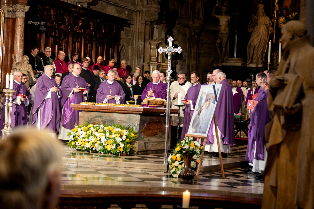 Mit einem "Requiem für seine Heiligkeit Papst Franziskus" nahm Österreich am Montagabend offiziell Abschied vom Papst. Dem Gottesdienst stand der Vorsitzende der Österreichischen Bischofskonferenz, Erzbischof Franz Lackner vor. Mit ihm konzelebrierten die heimischen Bischöfe. Die Politik war an erster Stelle von Bundespräsident Alexander Van der Bellen und Bundeskanzler Christian Stocker vertreten. Zahlreiche Gläubige gaben dem Papst im vollen Dom ebenfalls die letzte Ehre