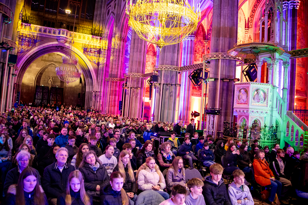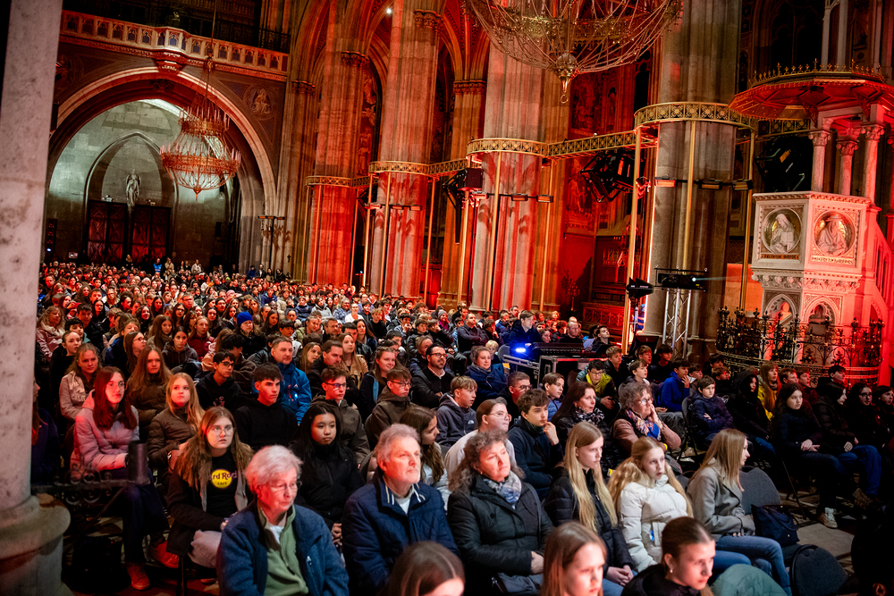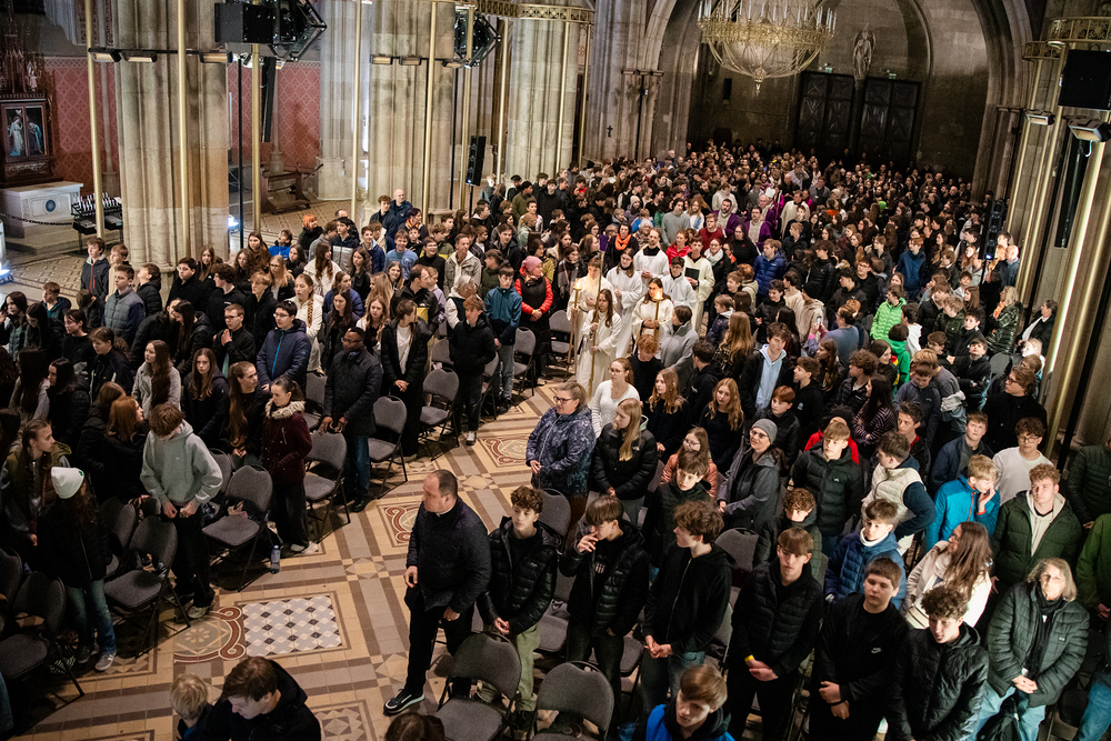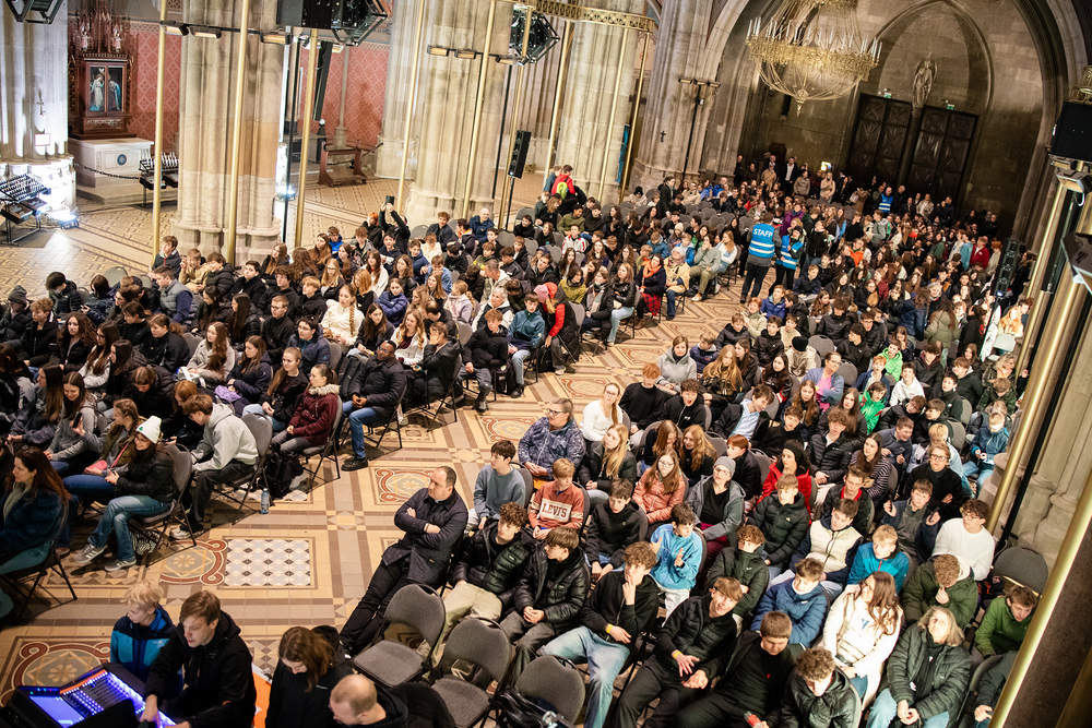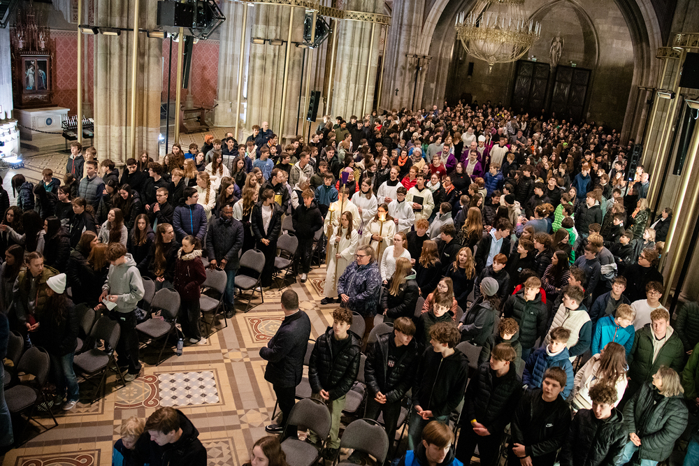 Beim Feuerfest am 21. März 2026 trafen sich über 800 Firmlinge bei der Votivkirche zu Workshops, gemeinsamen Aktivitäten und einer Messe, der unser Erzbischof Josef Grünwidl vorstand.