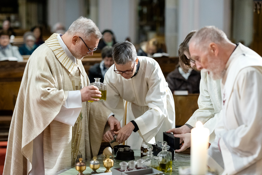 Am Mittwoch feierten die katholischen Gemeinden und Gemeinschaften des 18. Bezirks im Rahmen einer speziellen Messfeier, die von Radio Maria übertragen wurde, in der Pfarrkirche Weinhaus die Verteilung die vom Herrn Erzbischof geweihten Heiligen Öle. Dechant P. Arkadiusz Zakręta CM stand der Feier vor. Wir waren mit der Kamera dabei.